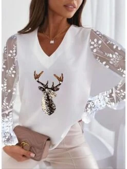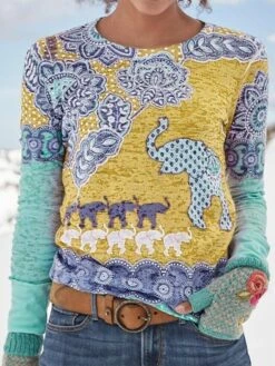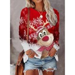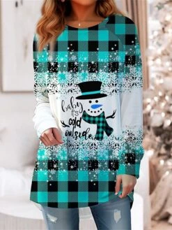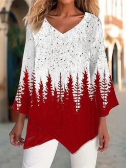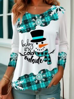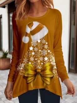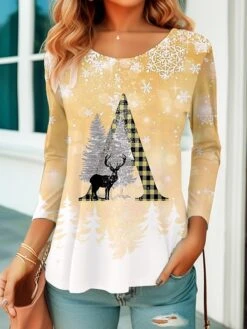 Women’s T Shirt Tee Christmas Tree Color Block Festival Winter Spring &Fall Fall & Winter