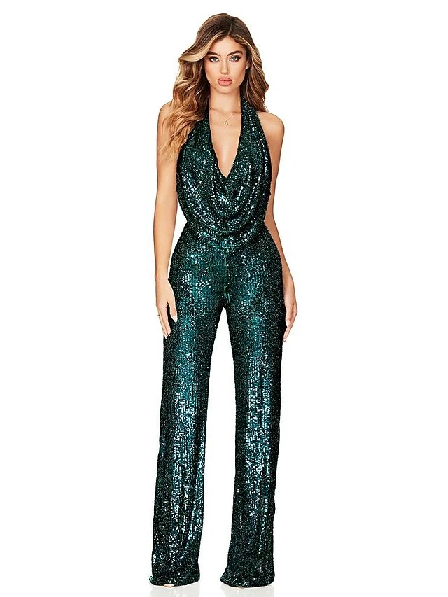 Women Party Jumpsuit Solid Color V Neck Sexy Party Christmas Going Out Slim Sleeveless Champagne Gold Silver White Green S M L Spring