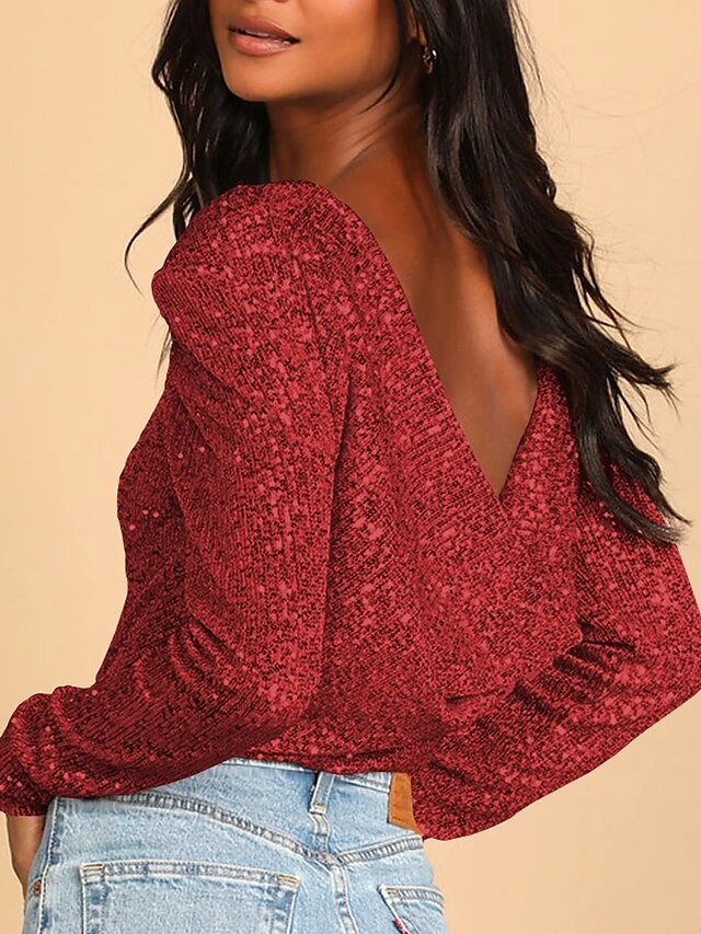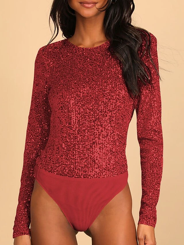 Women’s Bodysuit High Waist Sequin Solid Color Crew Neck Dressy Party Christmas Wedding Xmas Streetwear Daily Going Out Regular Fit Long Sleeve Silver Black Pink S M L Summer Fall