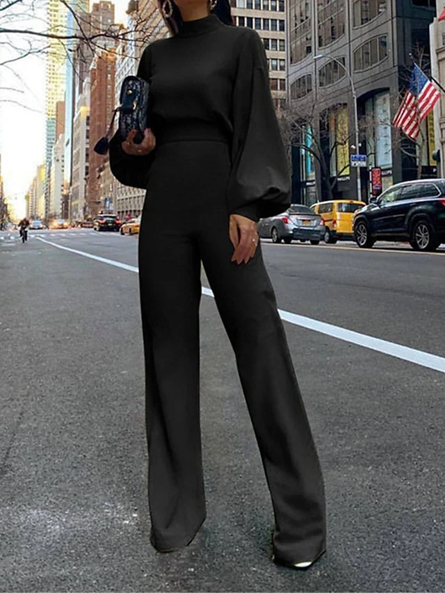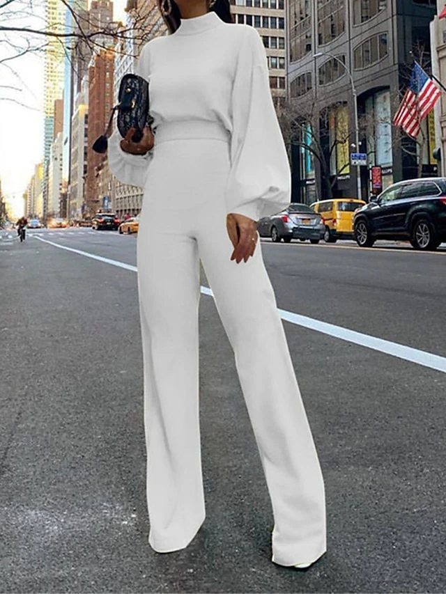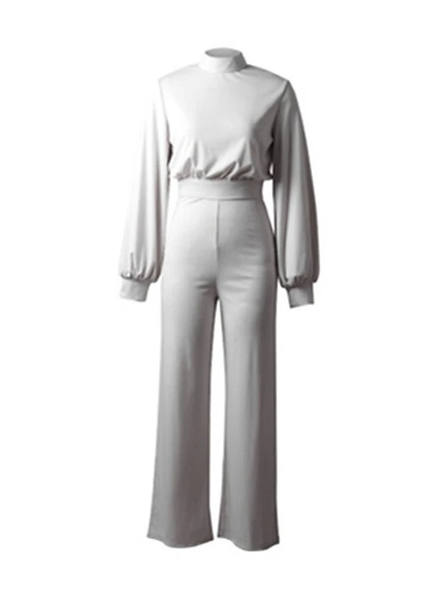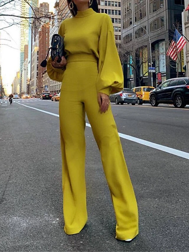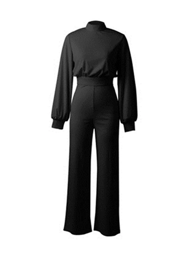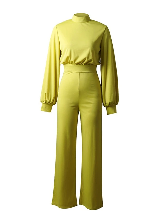 Women’s Jumpsuit High Waist Solid Color Stand Collar Streetwear Xmas Office Christmas Regular Fit Long Sleeve Lantern Sleeve Black White Yellow S M L Fall