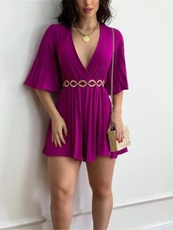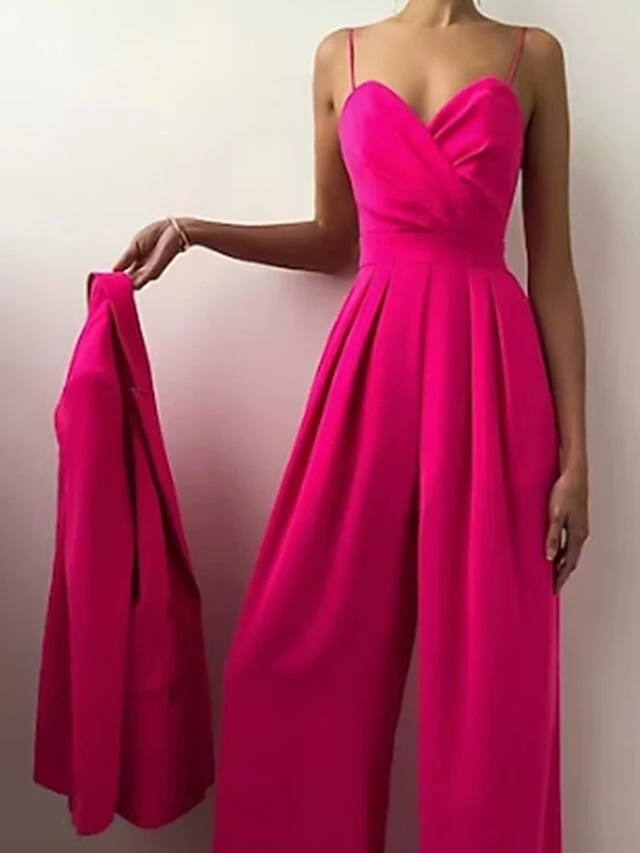 Women’s Jumpsuit Pleated Solid Color Shirt Collar Elegant Xmas Wedding Party Christmas Wide Leg Regular Fit Long Sleeve Pink S M L Fall