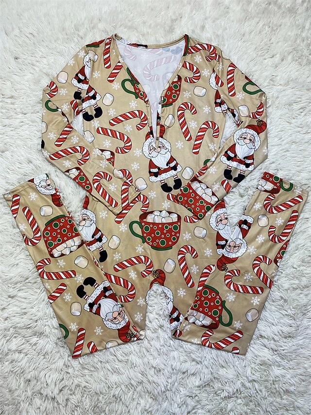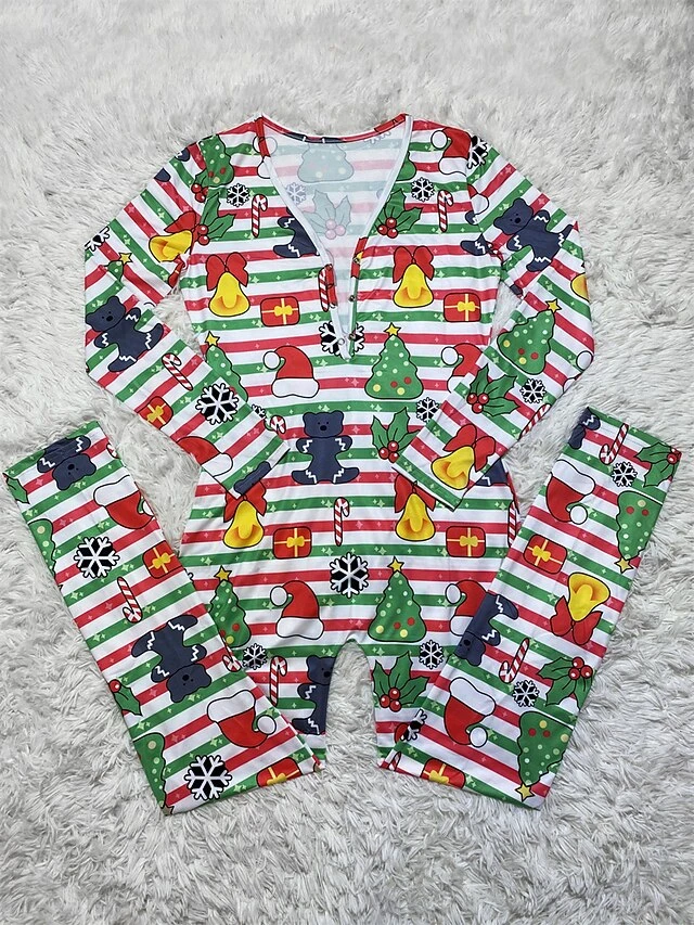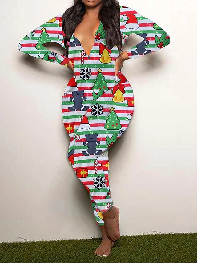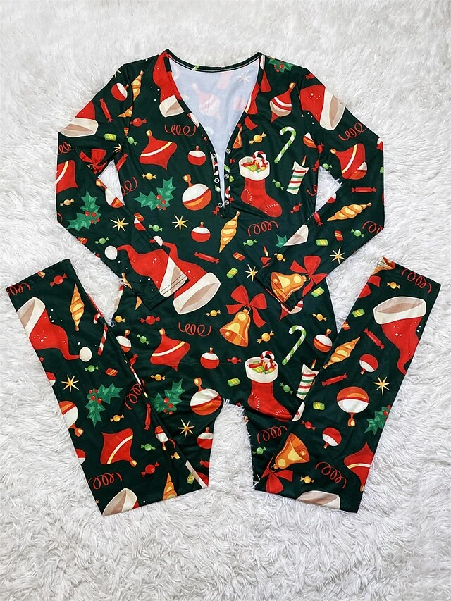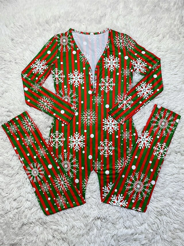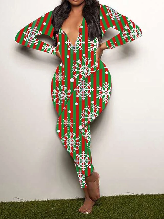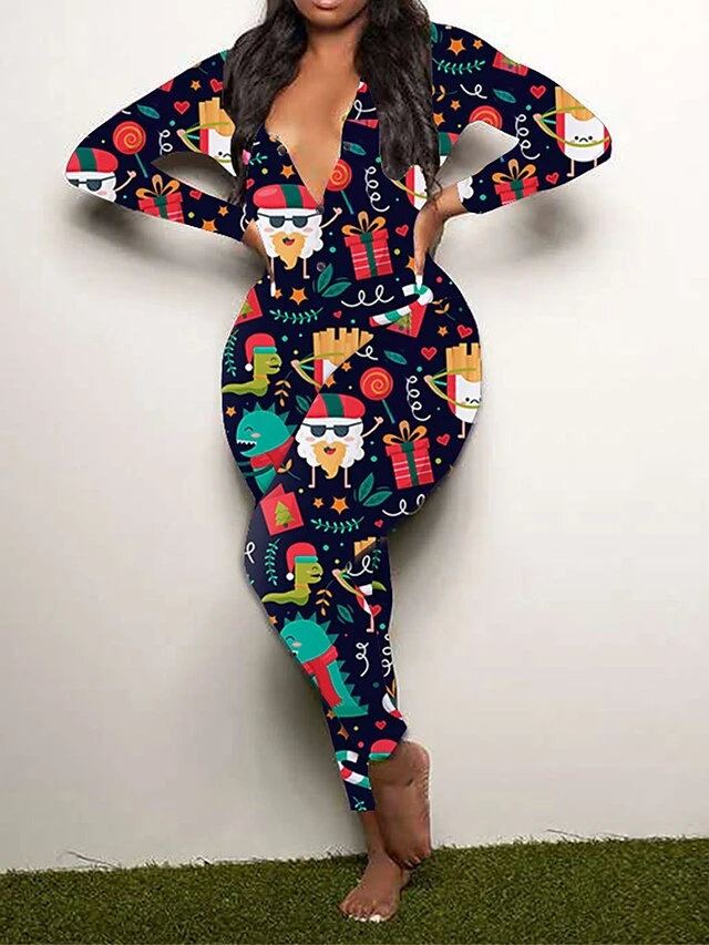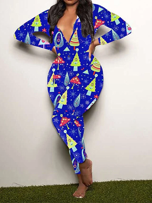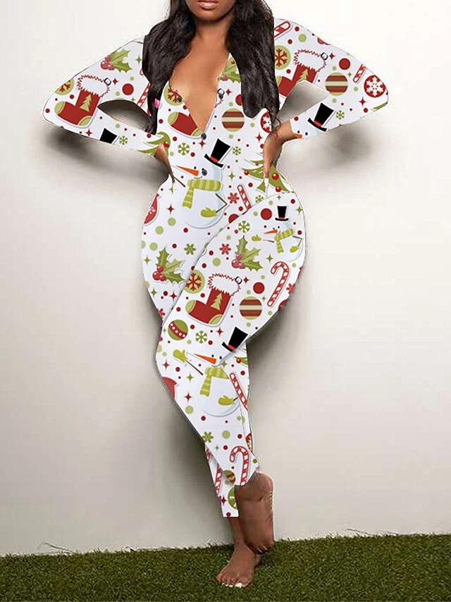 Women’s Jumpsuit Print Geometric V Neck Active Xmas Home Christmas Regular Fit Long Sleeve White-1 Blue-3 Khaki-7 S M L Fall