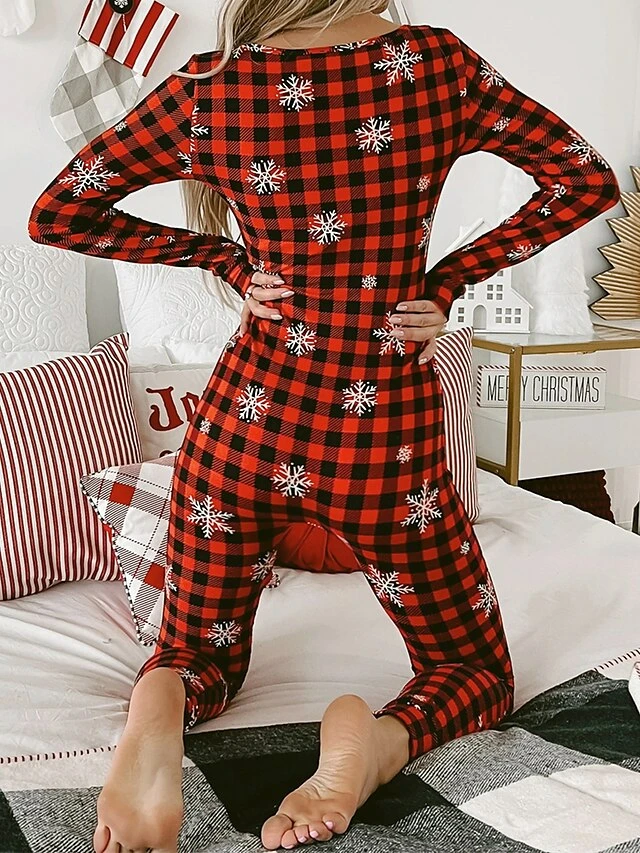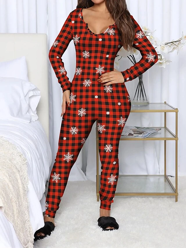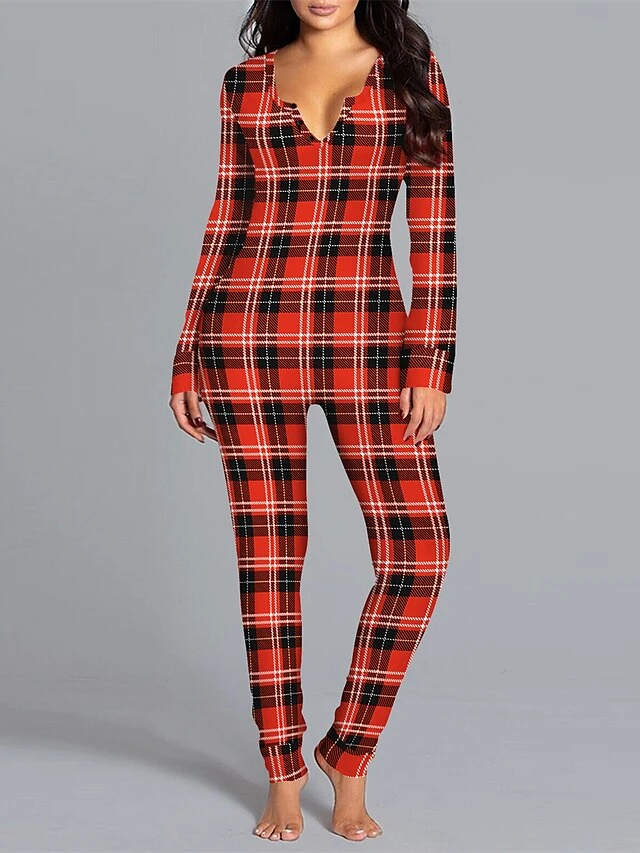 Women’s Jumpsuit Print Plaid V Neck Active Home Christmas Regular Fit Long Sleeve BKAO011 BKAO008 BKAO009 S M L Fall