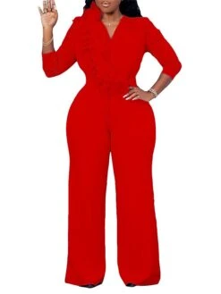 Women’s Jumpsuit Ruffle Patchwork Solid Color One Shoulder Streetwear Christmas Party Street Xmas Wide Leg Slim Sleeveless Red S M L Fall