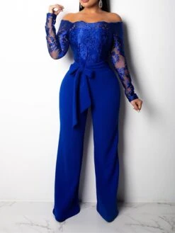 Women’s Jumpsuit Solid Color One Shoulder Elegant Wedding Cocktail Party Christmas Regular Fit Long Sleeve Black White S M L Spring