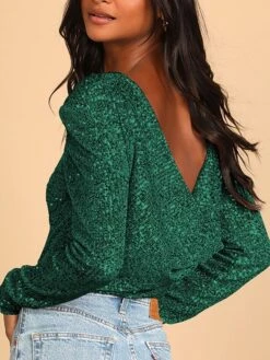Women’s Bodysuit High Waist Sequin Solid Color Crew Neck Dressy Party Christmas Wedding Xmas Streetwear Daily Going Out Regular Fit Long Sleeve Silver Black Pink S M L Summer Fall