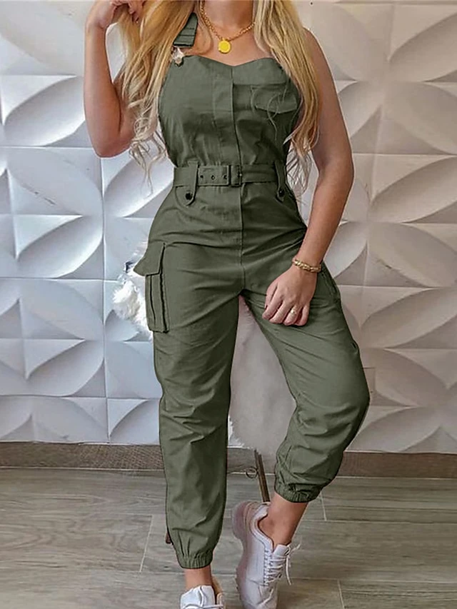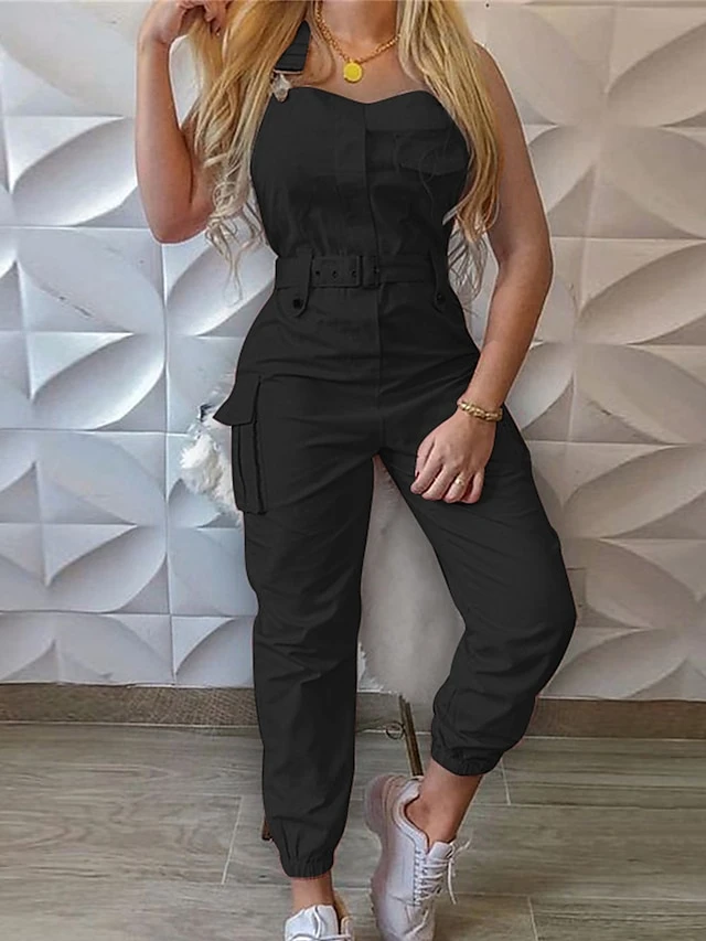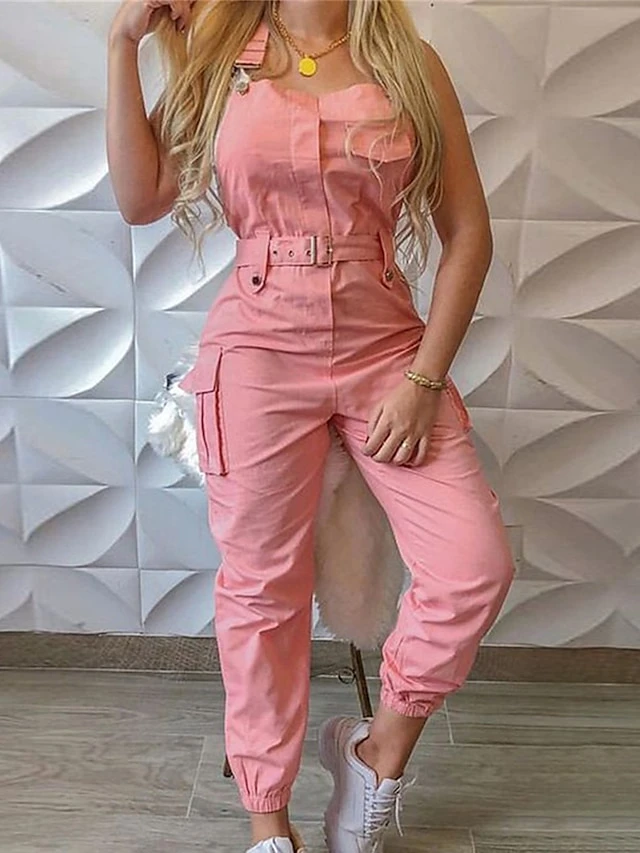 Women’s Overall Pocket High Waist Solid Color Square Neck Active Christmas Street Xmas Daily Regular Fit Sleeveless Black Yellow Pink S M L Fall