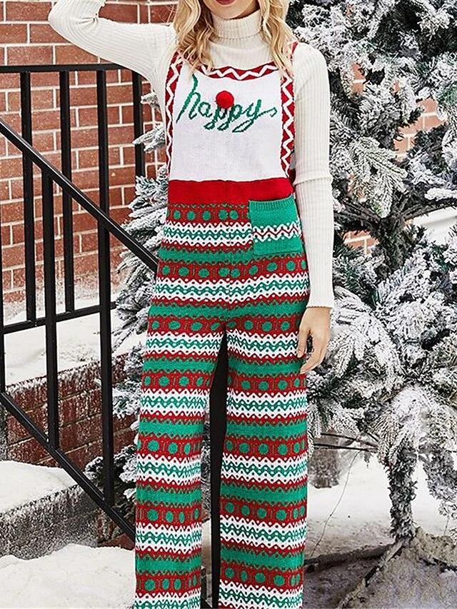 Women’s Overall Pocket Print Geometric Square Neck Holiday Christmas Daily Xmas Regular Fit Sleeveless Red Green S M L Fall