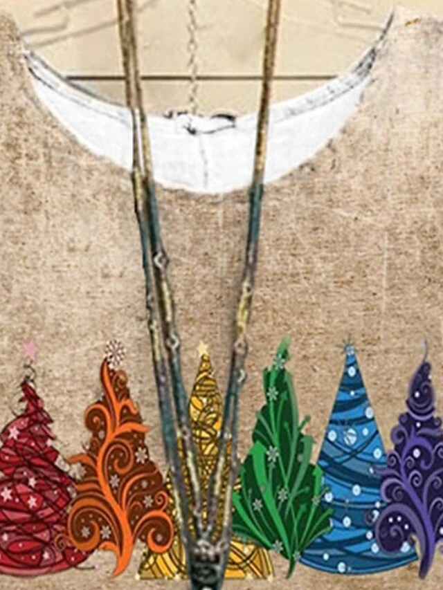 Women‘s Plus Size Christmas Tops Blouse Shirt Christmas Tree Print Long Sleeve Vintage Casual Festival Daily Polyester Winter Fall Khaki