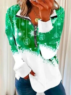 Women‘s Plus Size Christmas Tops Blouse Shirt Santa Claus Snowman Print Long Sleeve Crewneck Casual Daily Polyester Winter Fall Green Blue