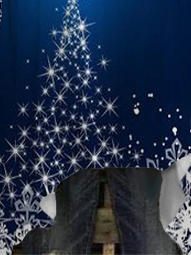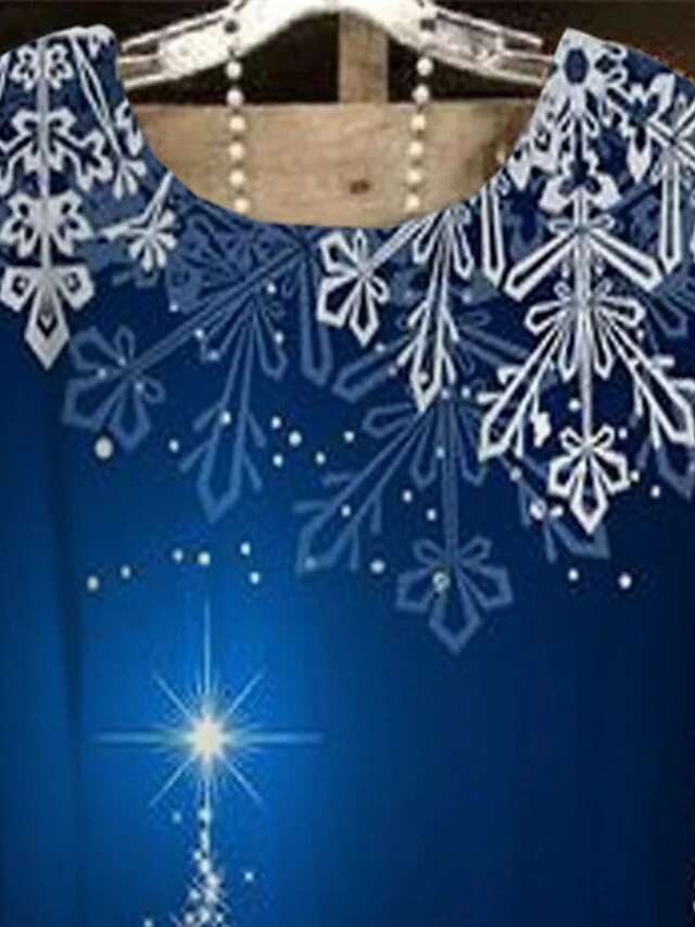 Women‘s Plus Size Christmas Tops T Shirt Tee Christmas Tree Snowflake Print Half Sleeve Crew Neck Casual Festival Daily Cotton Spandex Jersey Winter Fall Blue