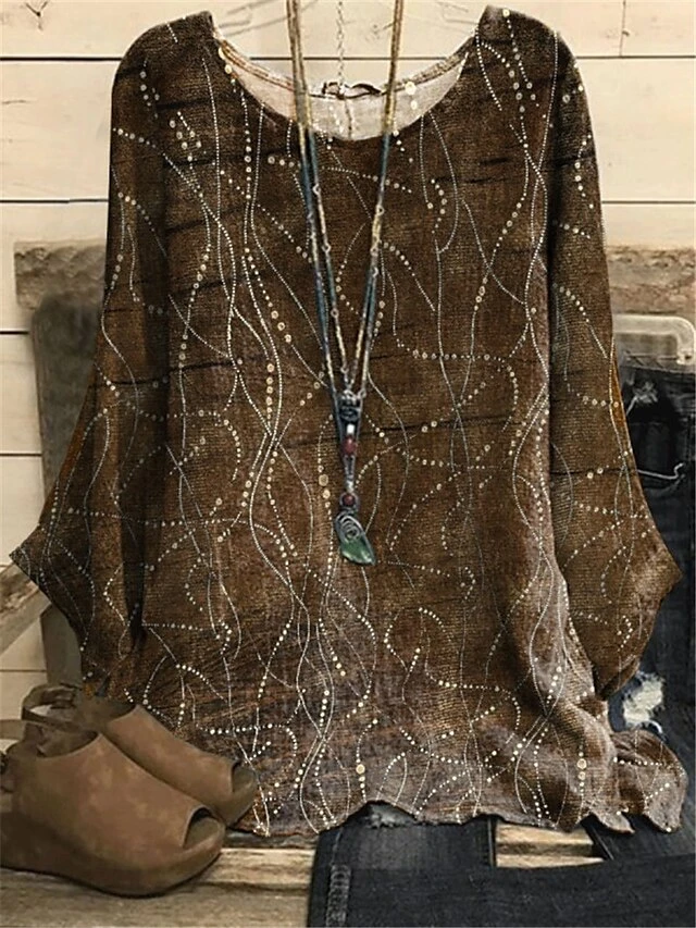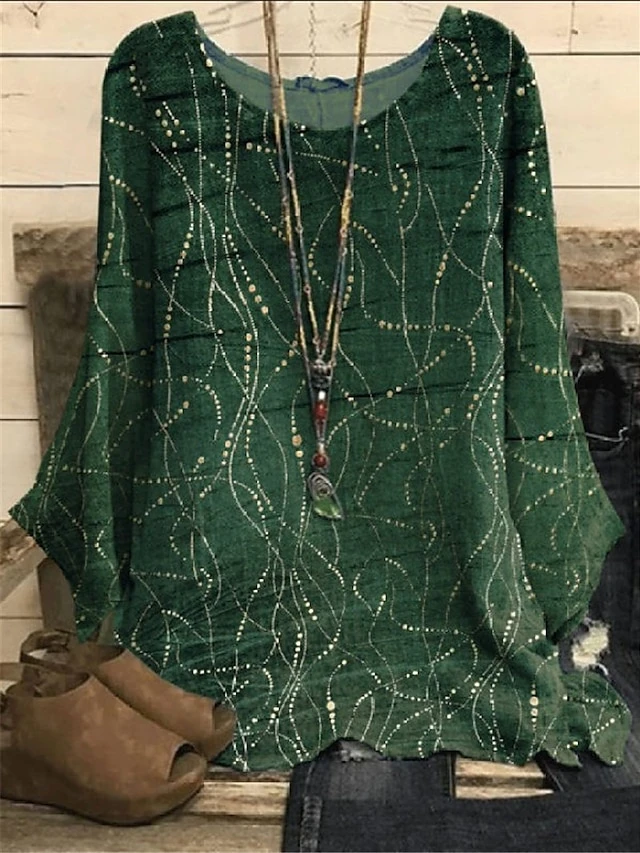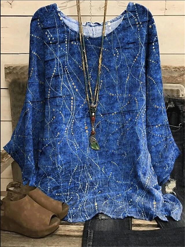 Women’s Plus Size Shirt Blouse Yellow Red Blue Chains Print Print Long Sleeve Christmas Going Out Vintage Round Neck Regular Fit Dolman Sleeve Spring Fall