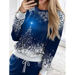 Women’s Shirt Pants Sets Christmas Shirt Black White Solid Color Patchwork Long Sleeve Vacation Daily Christmas Shirt Collar Regular Fit Spring &Fall